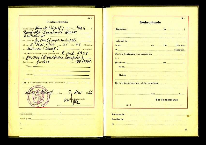 Reinhold Marx starb 5. Mai 1966 an den Folgen eines Autounfalls, also 2 Monate vor seinem 18ten Geburtstag.