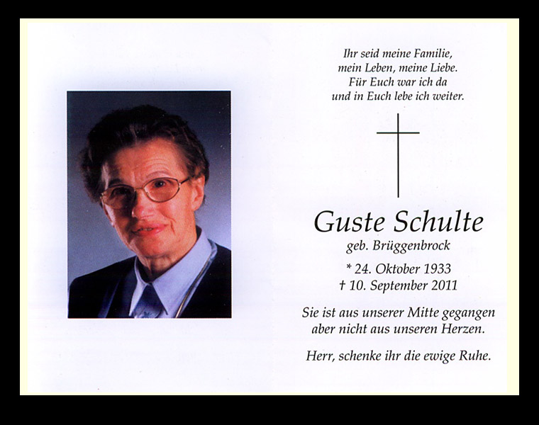 Schauen Sie weiter rechts: dort finden Sie weitere Informationen wie die Auszüge aus dem Stammbaum und die Totenzettel der Familie Schulte gen. Steggert.